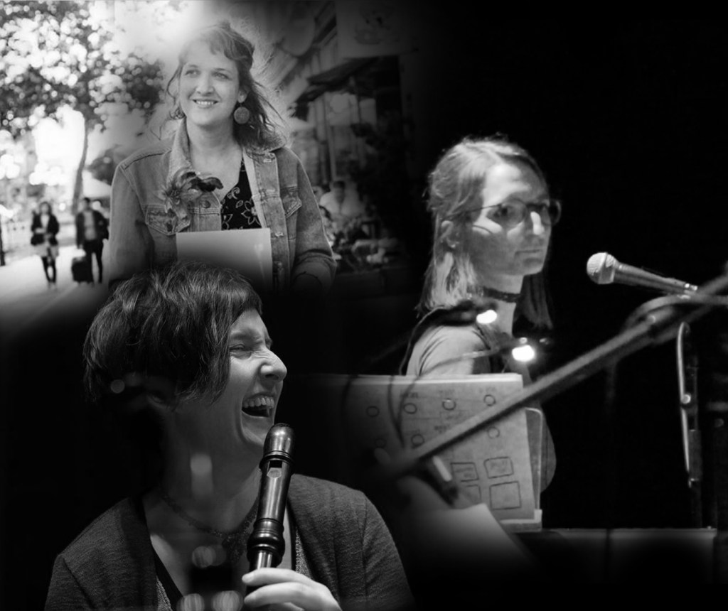 Unter dem Namen „Sphere Attacks“ (der Name ist Programm!) experimentieren Caroline Hausen (Blockflöten) und Eveline Meysel (Klavier) mit Live-Elektronik und Loop Station und entführen in betörend verstörende Klangwelten. Unterstützt werden sie an diesem Abend von Claus Gebert am Piano und den Autorinnen Lena Kratzer („Lyrik to go“) und Christine Hausen, die eine Auswahl ihrer Gedichte den Klangwelten gegenüberstellen, diese reflektieren, kommentieren, neue Ebenen hinzufügen. Sprache und Musik werden verflochten und zu gegenseitigen Impulsgebern.