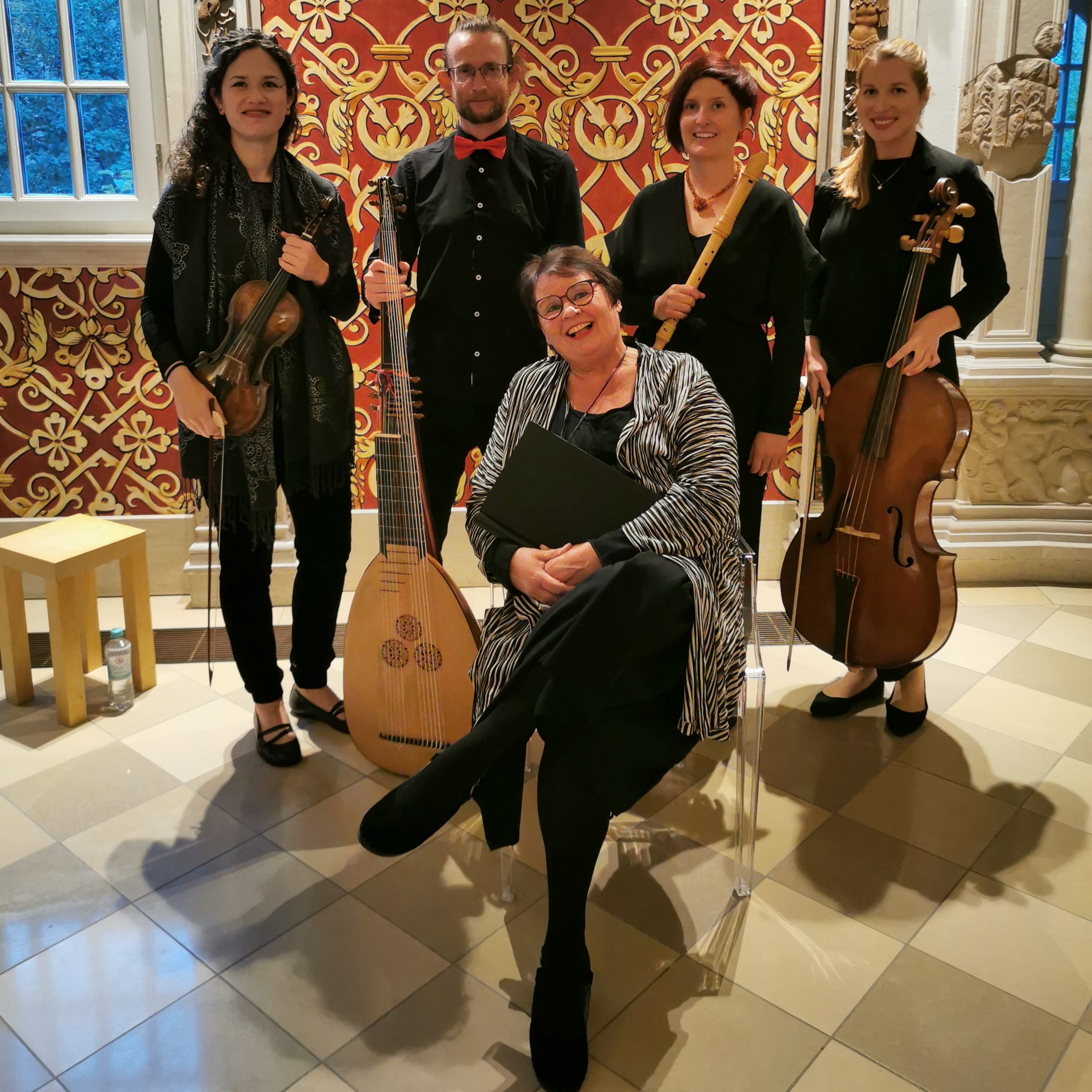 Treffen Sie die erlauchte Dame in ihrem musikalischen Reich und freuen Sie sich an den „Klangspezereien“, dargeboten von „MYsik fANtasTIK & friends“: Ricarda Herrnböck (Barockcello), Stefan Haas (Laute), Caroline Hausen (Blockflöte), Mónica Sardón (Barockvioline) und Christine Hausen (Erzählung).